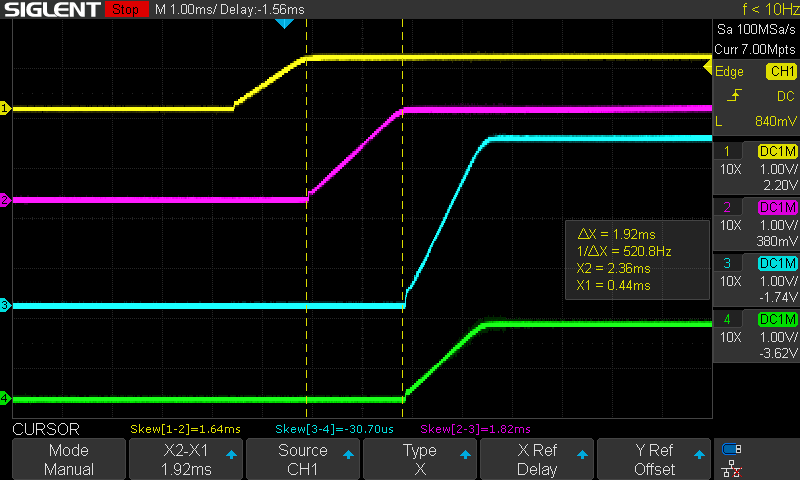在工作中,工程师常会遇到多种信号的测量需求,使用多台示波器同时测量成本相对较高,单台2通道示波器依次测量时间又较长。SDS1104X-U提供了高性价比的4通道,支持同时测量4个信号,节省测量时间及成本,便于相同时基下多种信号波形对比。