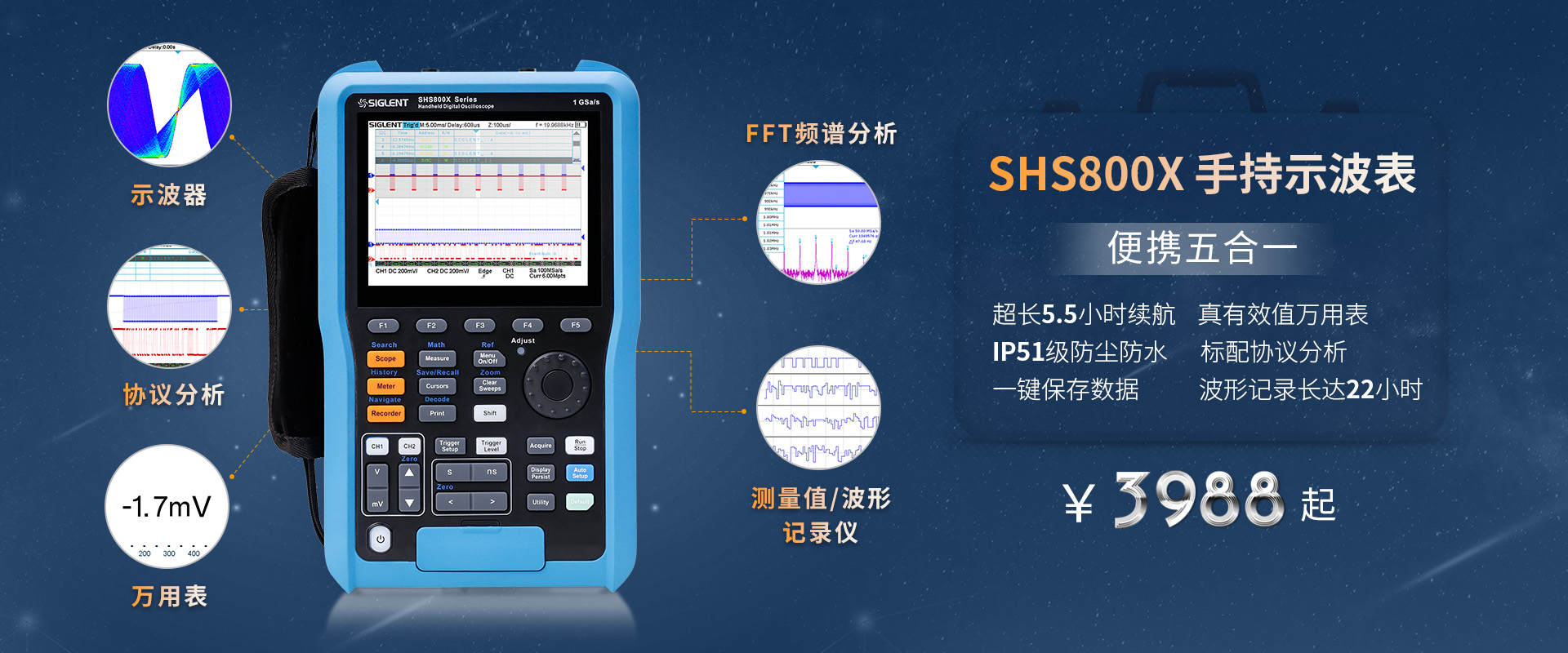 2021年8月26日,优米网官方下载苹果版发布了新一代手持示波表SHS800X系列,集成示波器、万用表、记录仪、协议分析、FFT频谱分析等多种功能于一体,专为便携和灵活测试而设计,可广泛应用于现场测试、研发,生产,维修等场景。