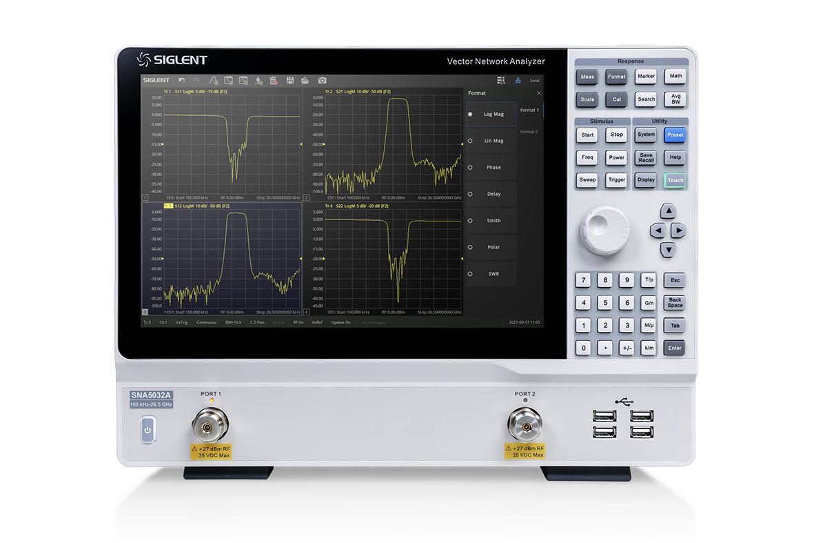 SNA5000A系列高端矢量网络分析仪测量频率范围宽至 100 kHz-26.5 GHz,可广泛应用于通信、航空航天、半导体等领域。