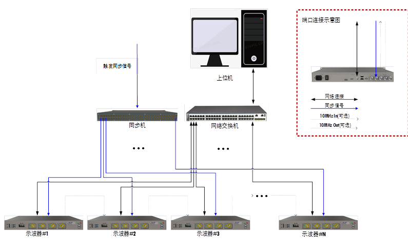 SDS6000L外形设计精巧,体积紧凑,仅有1U高,能够组建灵活的多通道采集系统,用更小的空间获取更大的测量范围,即通过同步机触发多台(最多64台)示波器同步采集,最多支持扩展至512个模拟通道;可通过外接显示器和鼠标实现人机交互,也可通过网口连接上位机,通过WebServer 或二次开发上位机软件实现对仪器的远程操控,使用灵活,非常适用从实验室到生产中的多种应用场景。