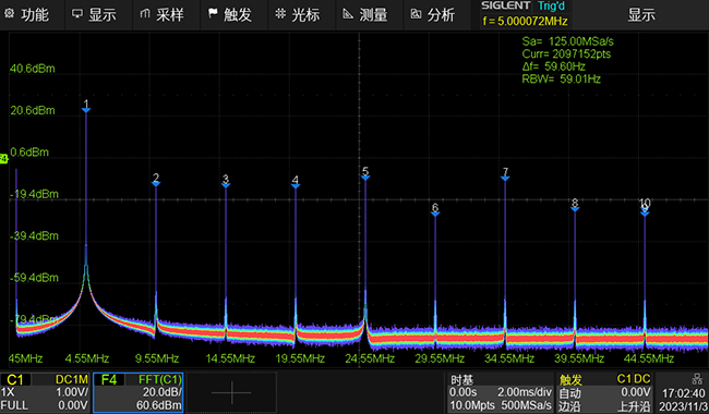 FFT模式下支持多种窗函数,支持普通、平均、最大值保持等模式,支持峰值检测,