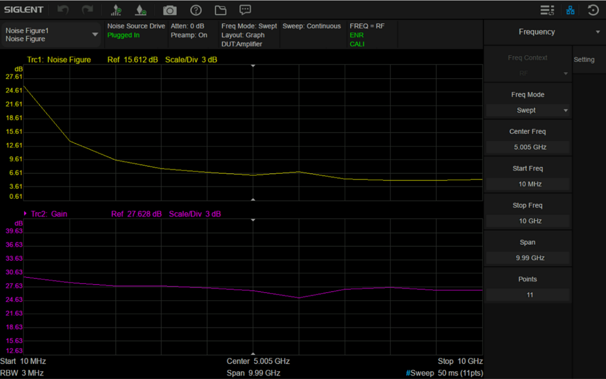 噪声系数的精确测量对于产品的研发和制造都非常关键。在研发领域,高测试精度可以保证设计仿真和真实测量之间的可复验性高,并有助于发现在仿真过程中未予以考虑的噪声来源;在生产和制造领域,更高的测试精度意味着在设定和验证器件的技术指标时可把指标的余量设定得更小,最终产品的技术指标越高,就越有市场竞争力。