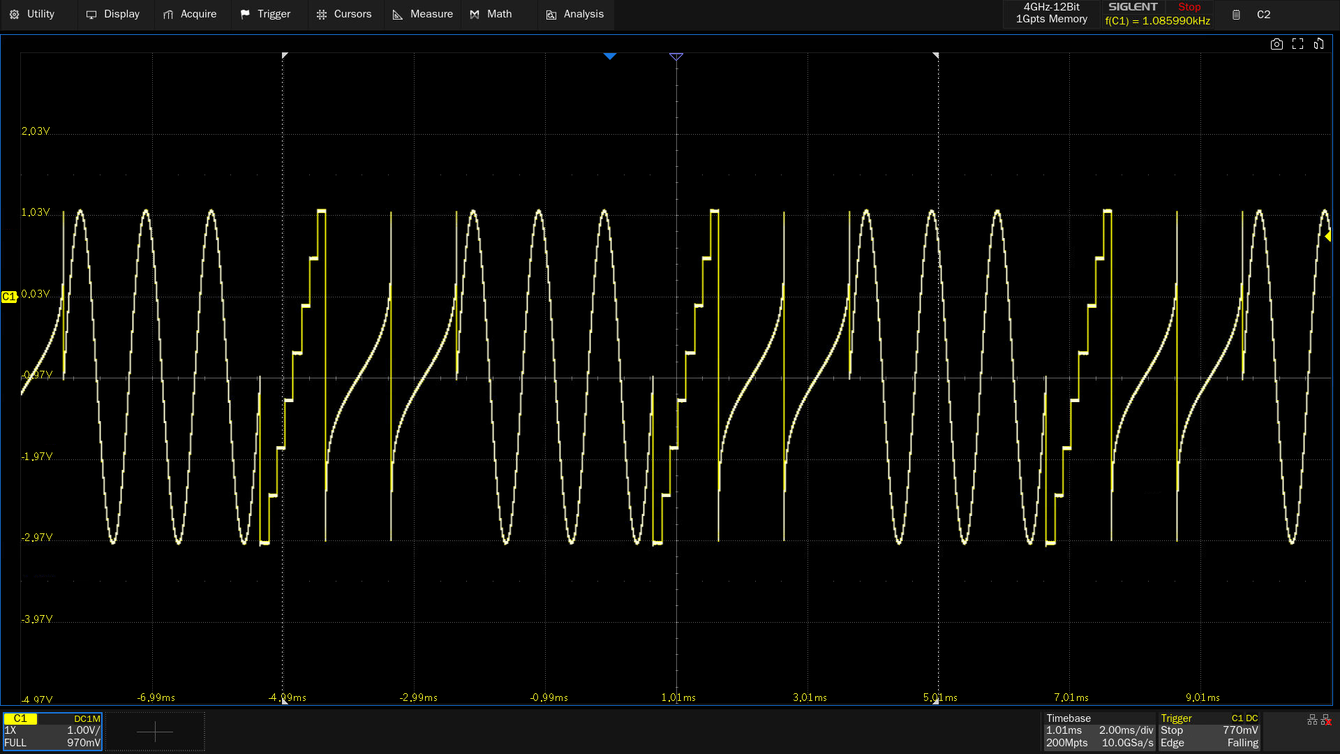 SDG1000X Plus采样率高达1GSa/s,是同类型产品的数倍。采样率是DAC在给定时间间隔内采样的样点数量,采样率越高,相同频率下的信号细节越丰富,波形质量越好。