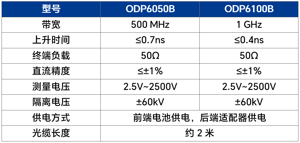 光隔离探头带宽500MHz、1GHz,采用了先进的光纤传输技术,通过电-光-电的转换,实现了信号输入和输出的完全电气隔离,具有超高共模抑制比。极其适用于开关电源﹑电机驱动器、新能源逆变器、变频器的测试,尤其在第三代半导体如氮化镓(GaN)和碳化硅(SiC)等高频电路测试中,ODP6000B可以近乎完美地抑制其高频共模噪声,提供精确的测量结果。