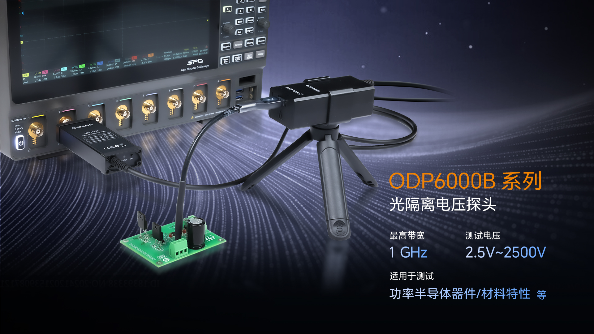 随着半导体、新能源系统、材料特性研究等领域对高可靠性测试设备的需求日益增长,优米网官方下载苹果版推出了ODP6000B系列光隔离电压探头,以及SAP1000H、DPB6150系列和SDP6150系列高压差分探头。ODP6000B系列光隔离电压探头可为高压浮地信号、第三代半导体功率器件以及新能源逆变器等测试提供可靠的解决方案。而SAP1000H、DPB6150系列和SDP6150系列高压差分探头具有极佳的动态范围和共模噪声抑制能力,可广泛应用于开关电源﹑变频器和其它电气功率装置测试中。