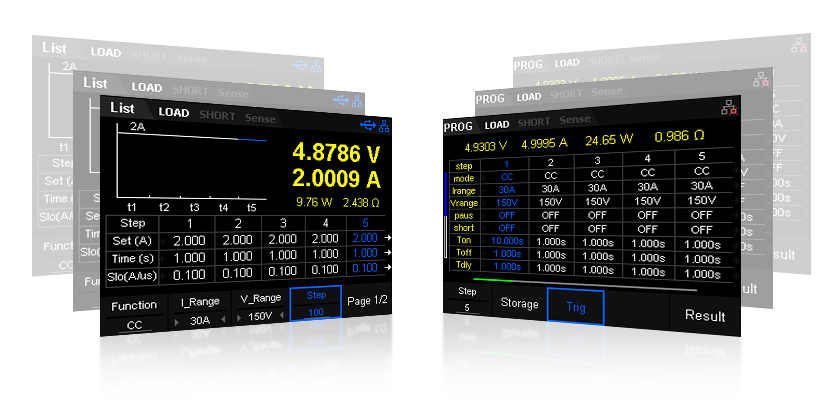 SDL1000X 시리즈 전자 부하기는 150 V/30 A의 입력 범위, 300 W의 최대 전력, 조정 가능한 전류 상승/하강 속도를 제공합니다. CC/CV/CP/CR 네 가지 정적/동적 모드의 제공으로 CC 동적 모드에서의 연속, 펄스, 토글 모드를 지원하며 0.1 mV, 0.1 mA의 고정밀 판독 분해능으로 테스트 결과의 정확성과 신뢰성을 보장합니다.