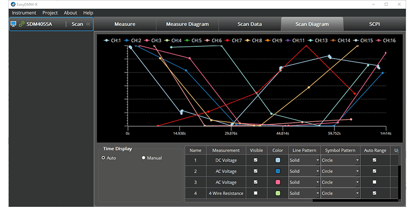 The SIGLENT SDM4065A-SC includes a multiplexer that provides multi-point measurement capabilities. The scanner features 12 multi-purpose + 4 current channels and supports the following measurement functions: DCV, ACV, DCI, ACI, 2WR, 4WR, CAP, FREQ, DIODE, CONT and TEMP ( RTD and Thermocouple ). It provides a convenient and versatile solution for test applications that require multiple measurement points or signals and is an ideal tool for R&D burn-in and production testing.