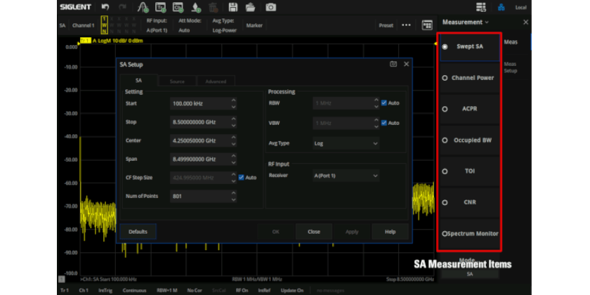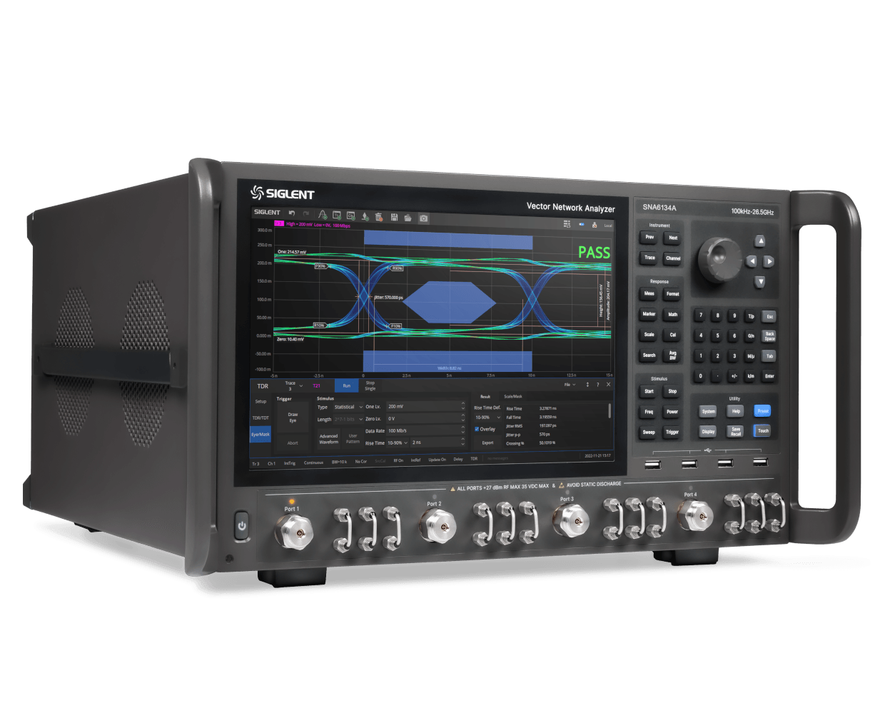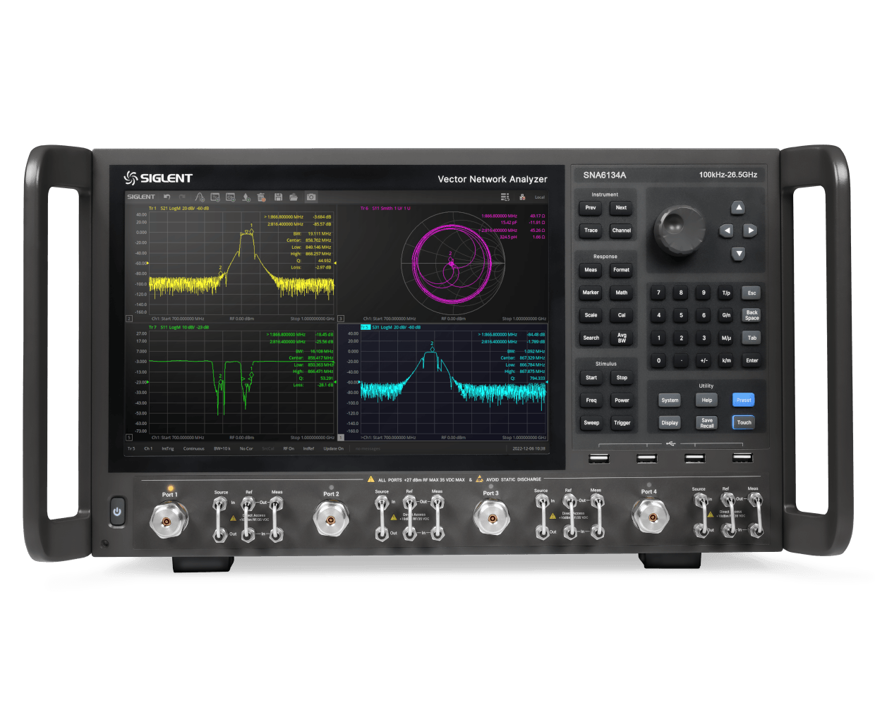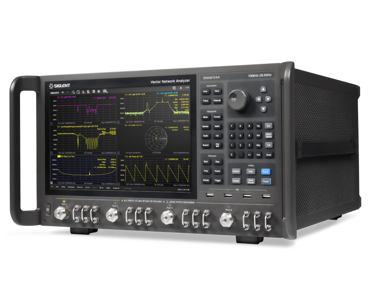 SNA6000A series is a high-end vector network analyzer of SIGLENT Technology, which has a measuring frequency as high as 26.5 GHz and supports comprehensive measurement of 4-port S parameters. Its powerful differential measurement and time domain analysis capabilities make it stand out in the test of high frequency devices. Support a variety of calibration methods and limit test functions to ensure the accuracy and reliability of measurement results.
