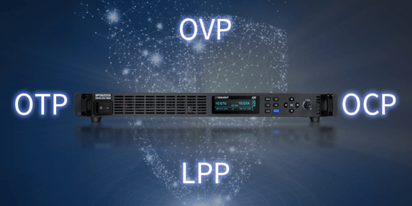 The SPS6000X Series is a programmable switching DC power supply with a wide range of single output and constant power features. This series includes two models, the SPS6225X and SPS6150X, which feature rated output voltages and currents of 200 V / 25 A and 100 V / 50 A, with a maximum output power of 1500 W. Users can connect up-to-five SPS6000X chassis of the same model in parallel to expand the output power to meet different application requirements.
