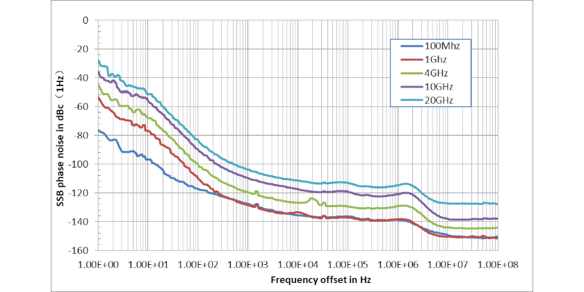- <Phase Noise: -135 dBc / Hz @ 1 GHz, 10 kHz offset (typ.)