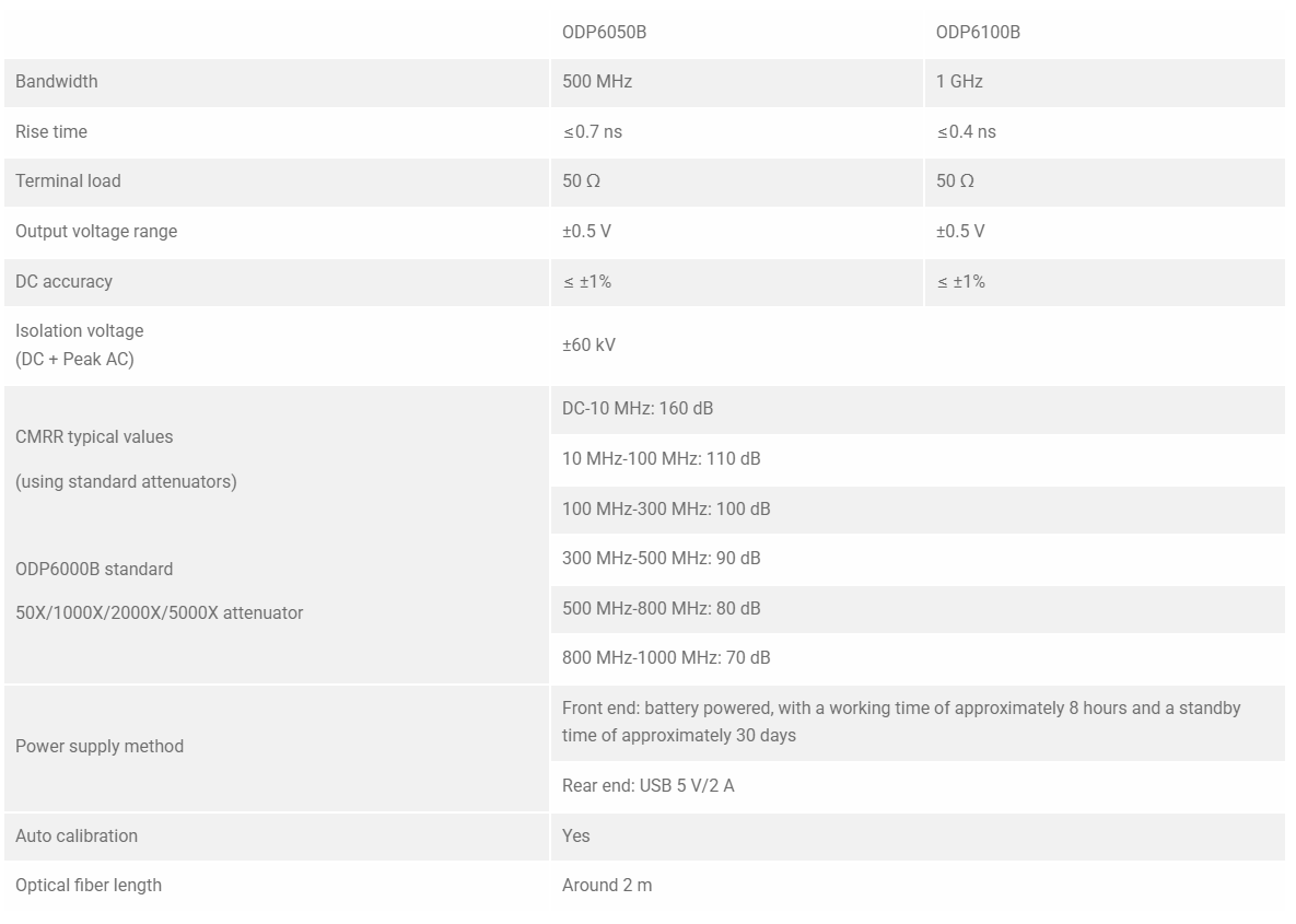 Featuring bandwidth options of 500 MHz and 1 GHz, the ODP6000B Series utilizes advanced fiber optic transmission technology. Through electrical-optical-electrical conversion, it achieves complete electrical isolation between signal input and output, delivering ultra-high Common-Mode Rejection Ratio (CMRR). This makes it exceptionally suitable for testing switch-mode power supplies, motor drives, new energy inverters, and variable frequency drives. Particularly in high-frequency circuit testing involving third-generation semiconductors like Gallium Nitride (GaN) and Silicon Carbide (SiC), the ODP6000B excels at suppressing high-frequency common-mode noise, enabling precise measurement results.