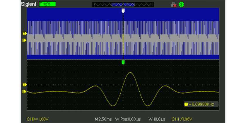 - 实时采样率高达1 GSa/s,等效采样率50 GSa/s