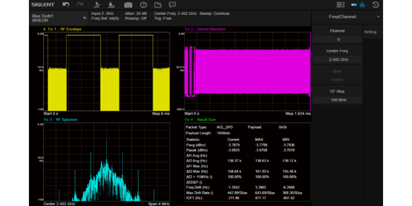 • SSA5000A与SigIQPro信号生成软件和SDG7000A/SSG5000X-V组成经济高效的SIGLENT蓝牙信号生成和信号分析解决方案,加快了从信号生成到数据信息再到评估结论的过程