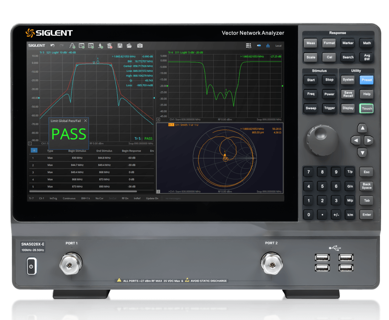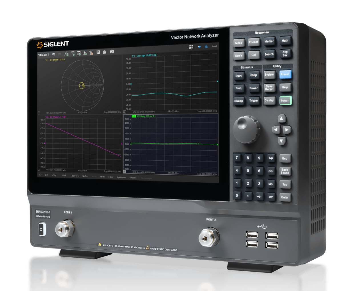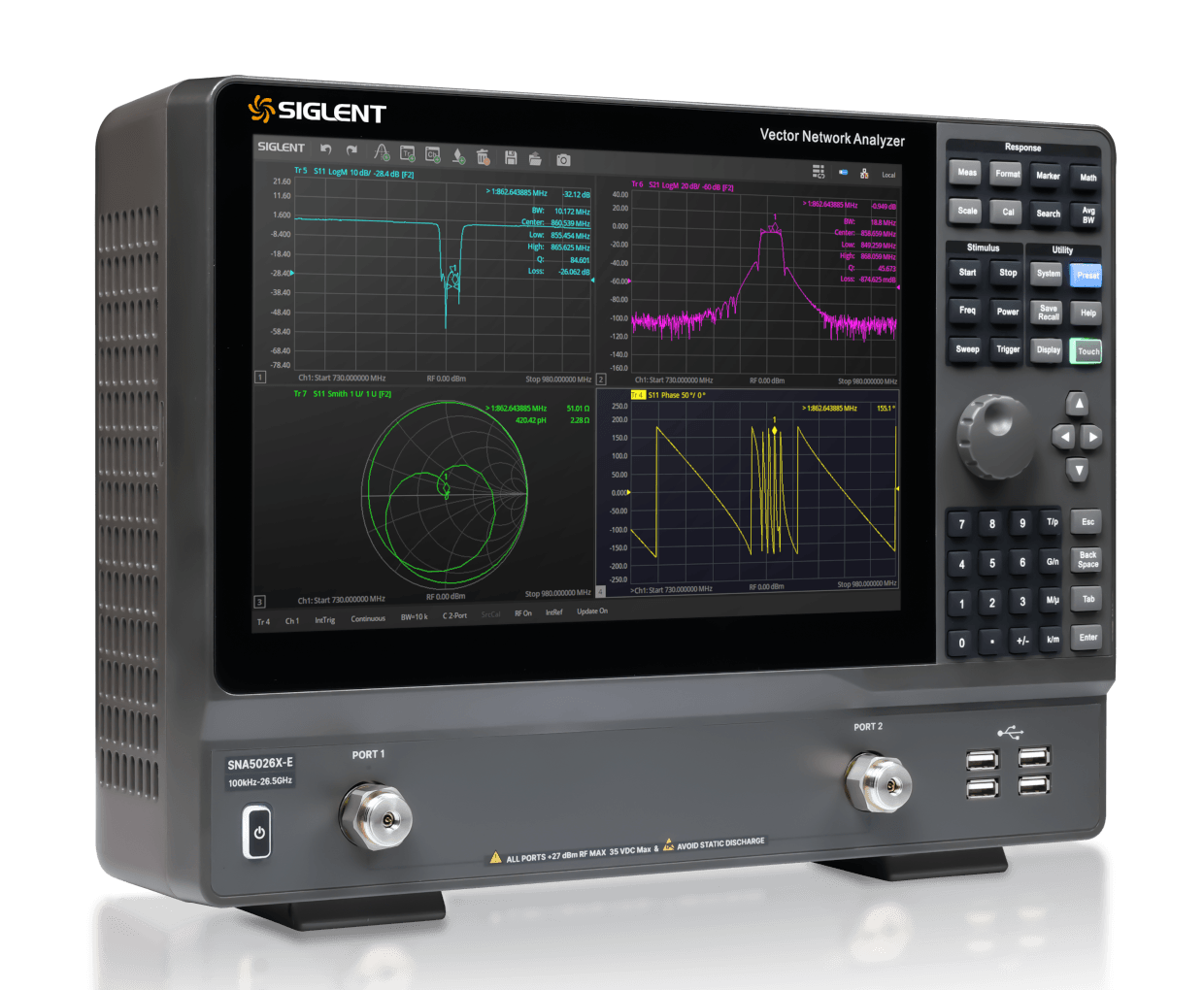 SNA5000X-E 系列频率范围覆盖9 kHz至26.5 GHz,支持2端口S参数测量。配备SOLT、TRL等多种校准方法,确保高精度测量。功能上支持时域分析(TDR)、频谱分析、差分测量、阻抗转换及端口扩展等,适用于滤波器、天线等射频器件的参数测试。支持HDMI输出,并提供LAN、USB接口及SCPI/LabVIEW远程控制协议,兼容自动化测试系统。该系列产品具有高性价比和多功能性等特点,可应用于通信、汽车电子等领域,满足研发、生产及教育场景的多样化需求。
