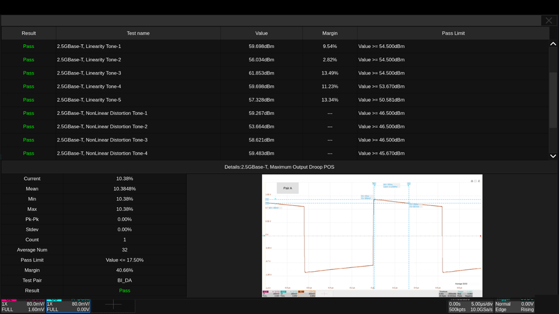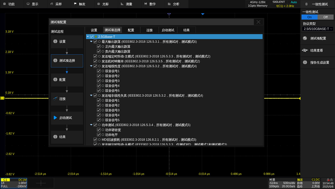 SDS7000A的2.5G/5G/10GBase-T测试项目包括: