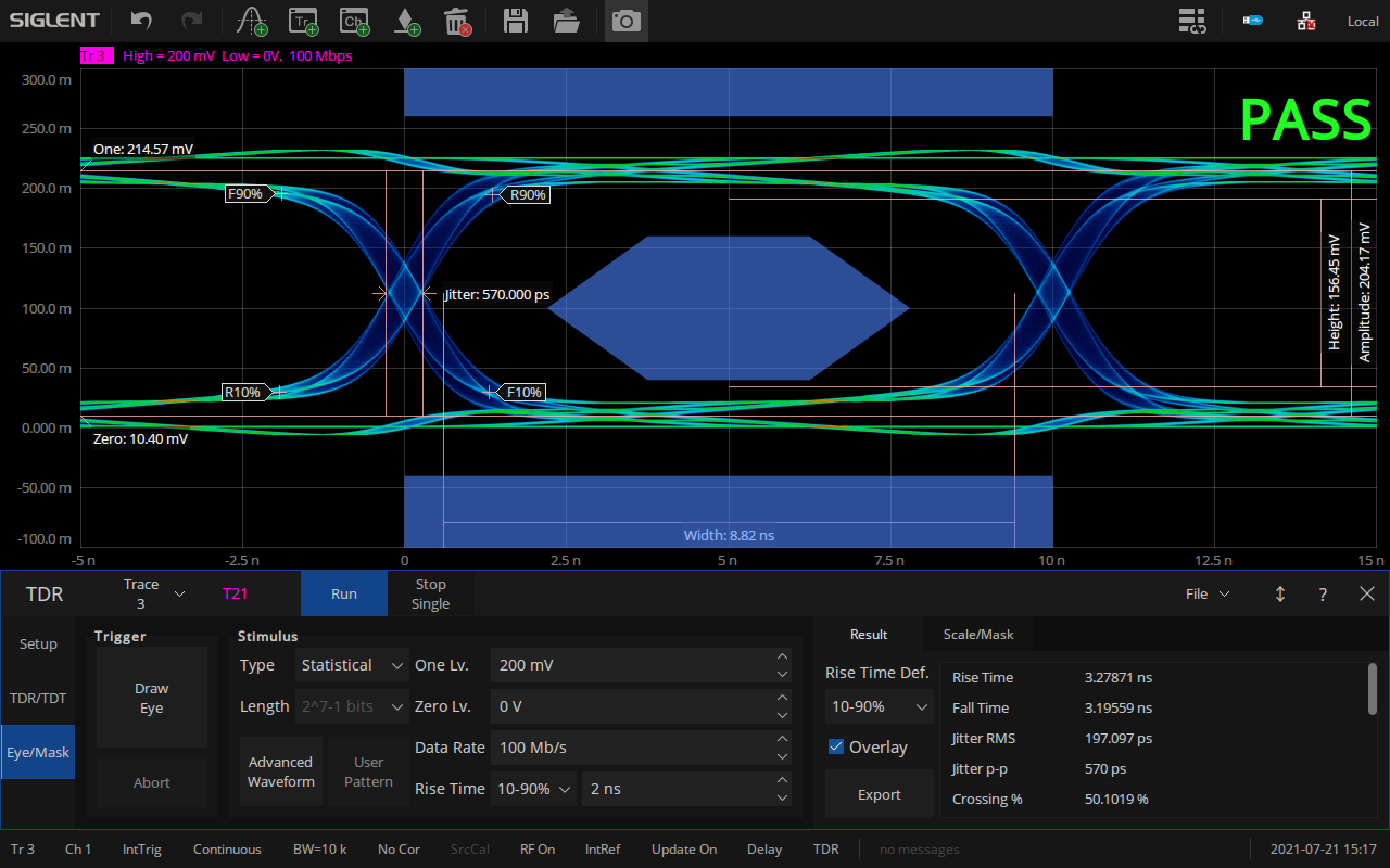 SNA5000X-E还搭载了眼图功能,为需要对高速信号进行时域分析、高速信号完整性分析的客户节省了大量成本和时间。