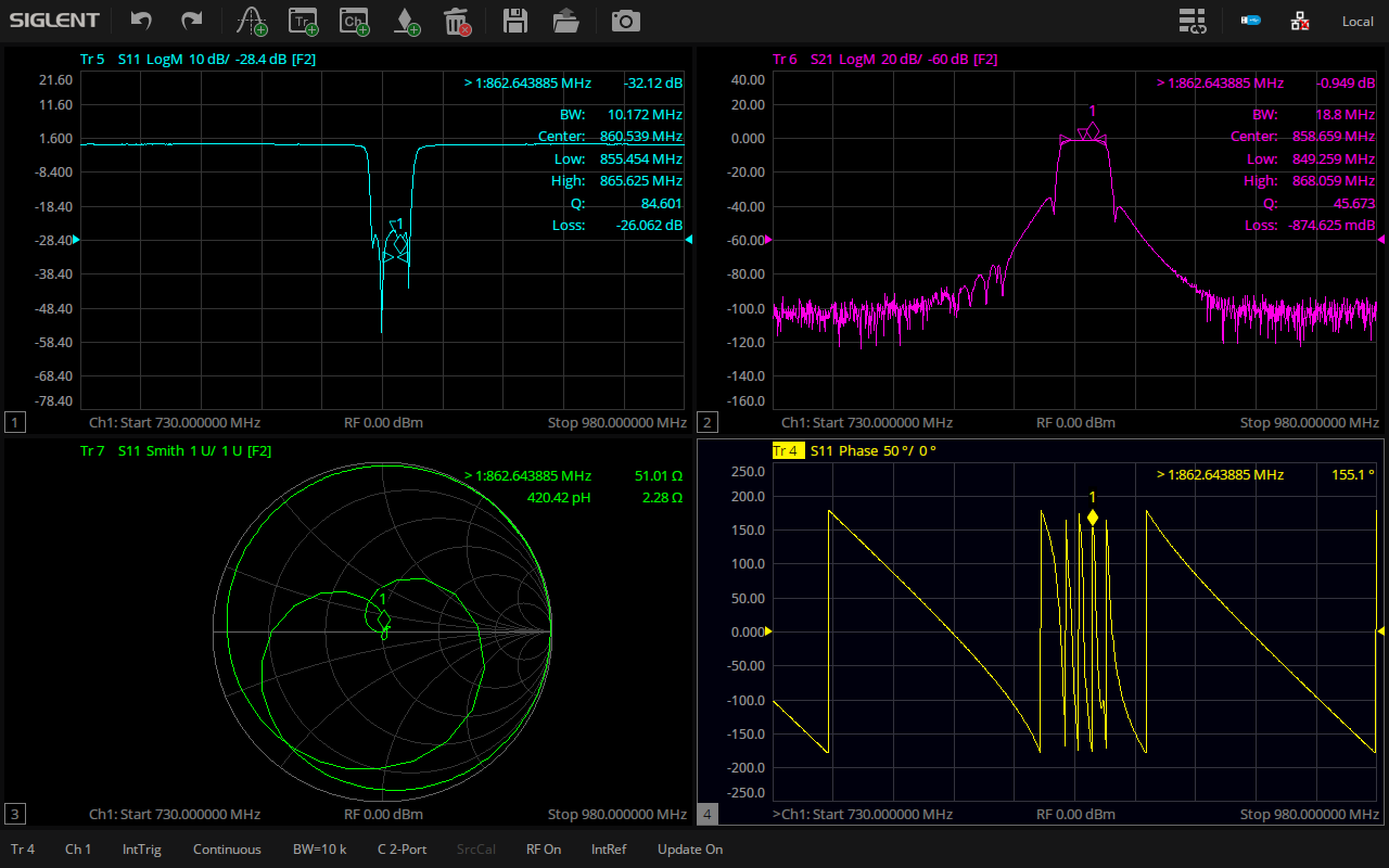 SNA5000X-E系列具备12.1英寸触摸屏,支持多窗口显示,工程师可同时观察多个S参数,数据对比一目了然。同时,SNA5000X-E也支持包括群时延、史密斯图等多种数据显示格式,支持高频测量与滤波器特性一键分析,快速获取插入损耗、带宽等关键指标,还支持公式输入功能,让每一次测试都更便捷。